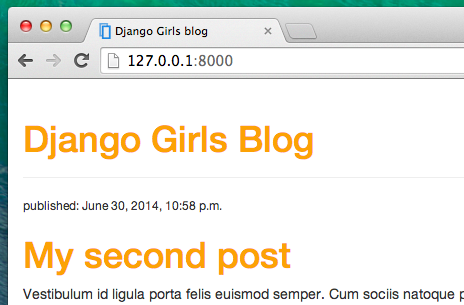 Agora adicionaremos blocos de declaração para seletores diferentes. Seletores começando com . se referem às classes. Existem muitos tutoriais e explicações sobre CSS na Web para ajudar você a entender o código a seguir. Por enquanto, basta copiar e colá-lo em seu arquivo blog/static/css/blog.css :