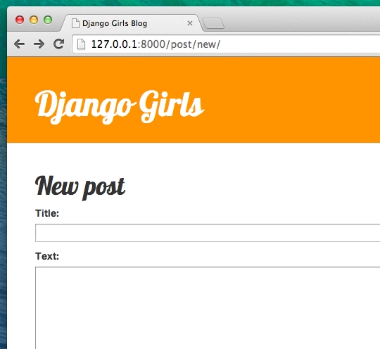 <form ...>precisamos adicionar um {% raw %}{% csrf_token %}{% endraw %}. Isso é muito importante, pois faz com que nosso formulário seja seguro! O Django vai reclamar se você esquecer de adicionar isso e tentar salvar o formulário.